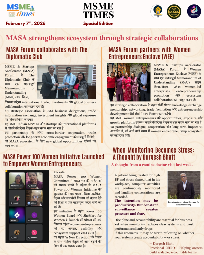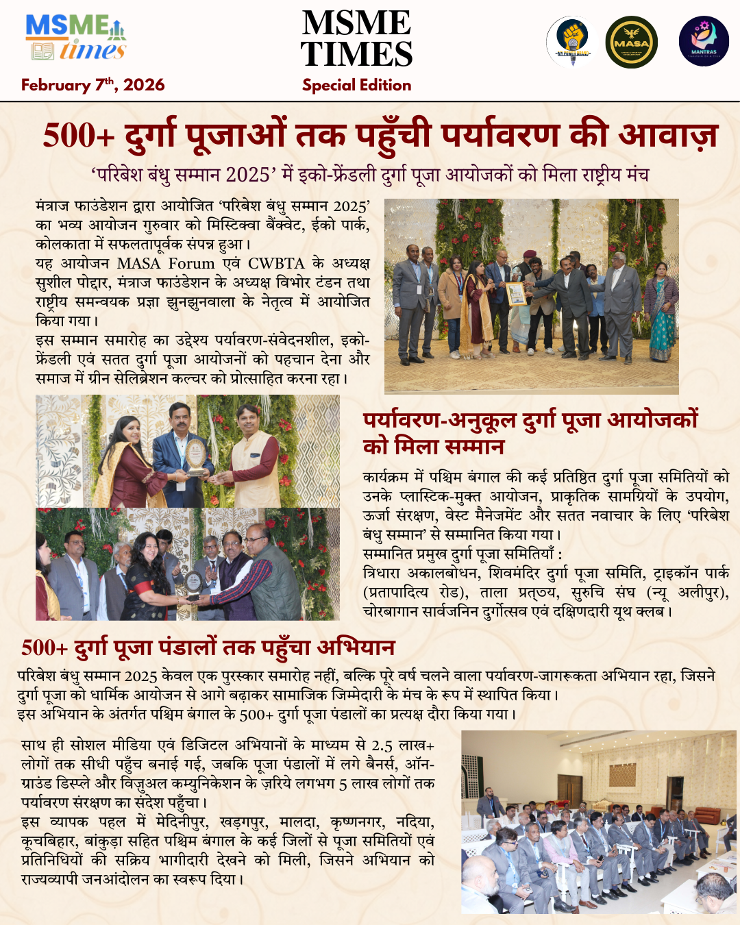 The Special Edition reflects MSME Times’ commitment to highlighting meaningful change, inclusive growth and real voices from the MSME sector.