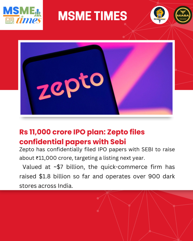 Quick-commerce giant Zepto has officially moved towards its public listing by filing a confidential Draft Red Herring Prospectus (DRHP). The company aims to raise approximately ₹11,000 crore from the market. With a war chest of over $900 million in cash, Zepto is now valued between $7 billion and $8 billion. This listing is expected to be a litmus test for the “10-minute delivery” business model as it competes with Blinkit and Swiggy Instamart for market dominance.